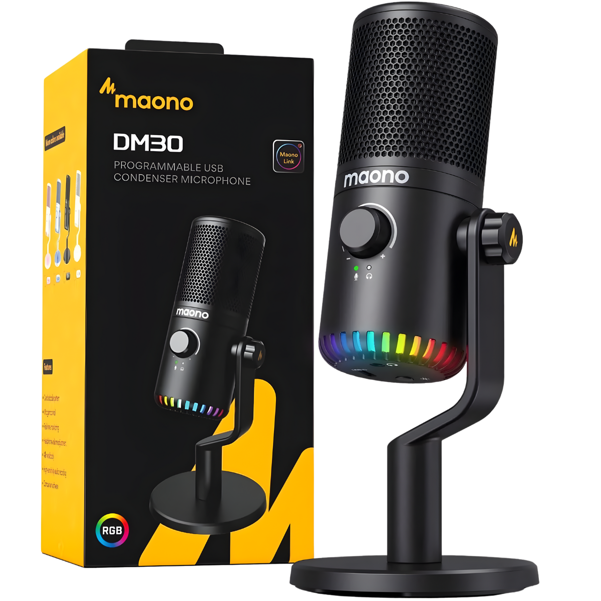 Crafted with a sturdy metal frame, the Maono DM30 offers long-lasting durability while maintaining a modern, compact form factor perfect for desktop use.